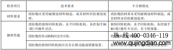 消防槍炮 6.11.1 消防水槍  6.11.1.1 檢查項目      檢查項目、技術要求和不合格情況見表59。
